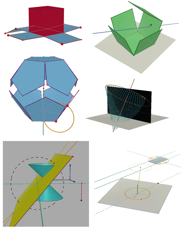 18 Cabri 3D version 1 Example Files (kindly provided by Kate Mackrell and Jean-Jacques Dahan. Here are some images from these files.The actual files are dynamically transformable Cabri 3D files openable in the Cabri 3D application.