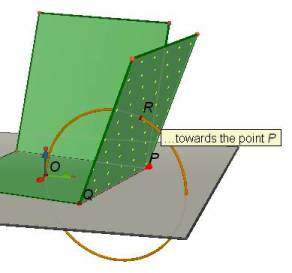 Now the square with centre R is rotated about the vertical vector through O. Select this vector. |