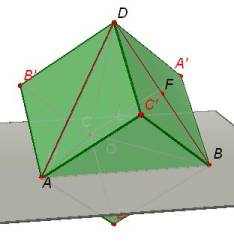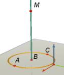 Construct the circle with this line as axis that passes through A. Now create point C (point symmetry of A in B). Create point M on the axis of the circle. M will be the apex of the pyramid. |
