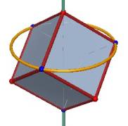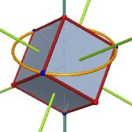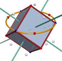 Look at the file “dodeca-from-cube” in the examples – Platonic_Solids folder (under Cabri 3D in the Program Files folder) and choose one of the dodecahedron vertices that is not also a cube vertex. On what plane does this vertex lie? On what circle does this vertex lie? |