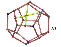 It’s useful to start with the file “dodeca-from-cube” in the examples – Platonic_Solids folder (under Cabri 3D in the Program Files folder) if you have not constructed your own dodecahedron. First, find the red point that moves and resizes the cube and label it m. Manipulating this point enables quick manipulation of the dodecahedron. Now hide the cube and its edges. |