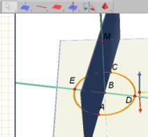 Now construct the circle with axis AB passing through point C. You might want to experiment with constructing circles by all methods possible – note that a centre point and a radius point are not enough to specify a circle in 3D. |