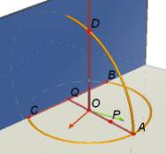 Create the segment AQ and the circle with centre O and radius point A (use the vertical vector from O as axis for this circle). |